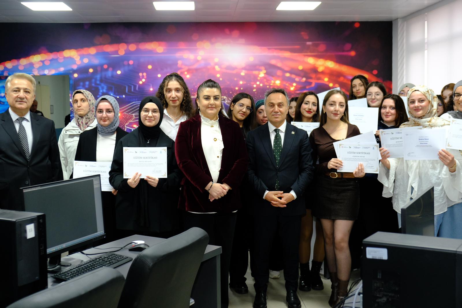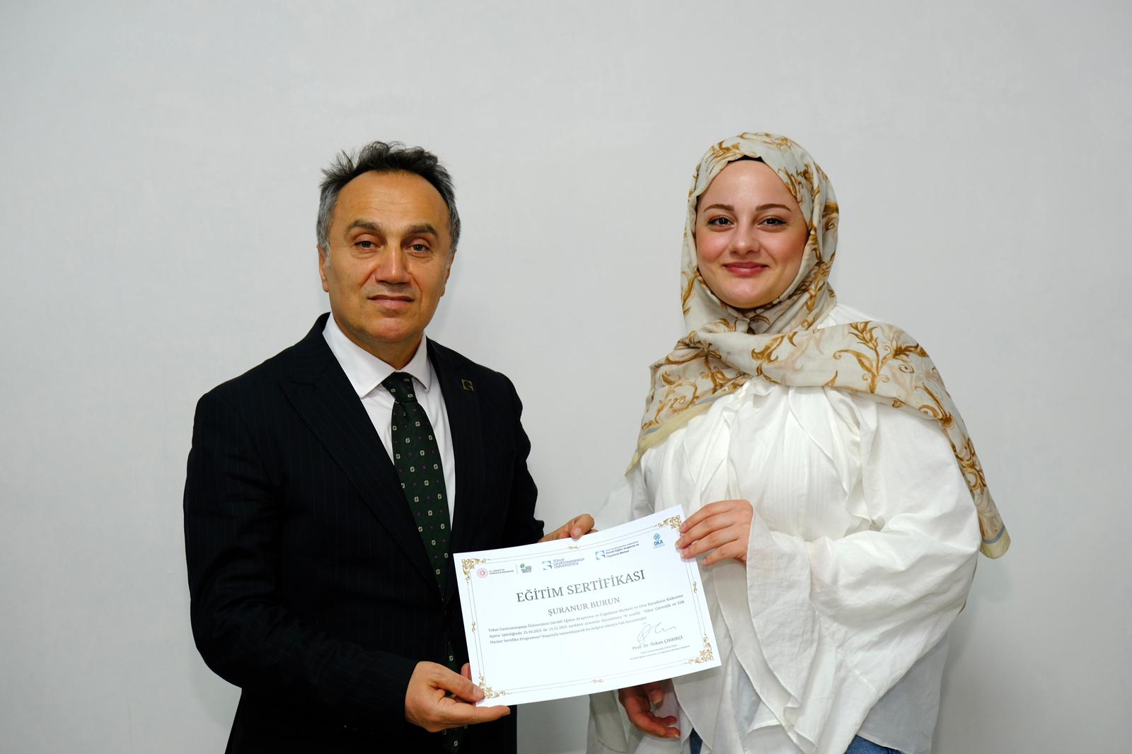 Üniversitemiz ile Orta Karadeniz Kalkınma Ajansı (OKA) iş birliğiyle, kadınların dijital yetkinliklerini geliştirmek ve teknoloji alanında istihdamını desteklemek amacıyla düzenlenen “Siber Güvenlik ve Etik Hacker Eğitimi” başarıyla tamamlandı. Eğitim sonunda düzenlenen sertifika törenine Rektörümüz Prof. Dr. Fatih Yılmaz, OKA Genel Sekreteri Mehlika Dicle, Rektör Yardımcısı Prof. Dr. Mücahit Eğri, akademisyenler ve kursiyerler katıldı.