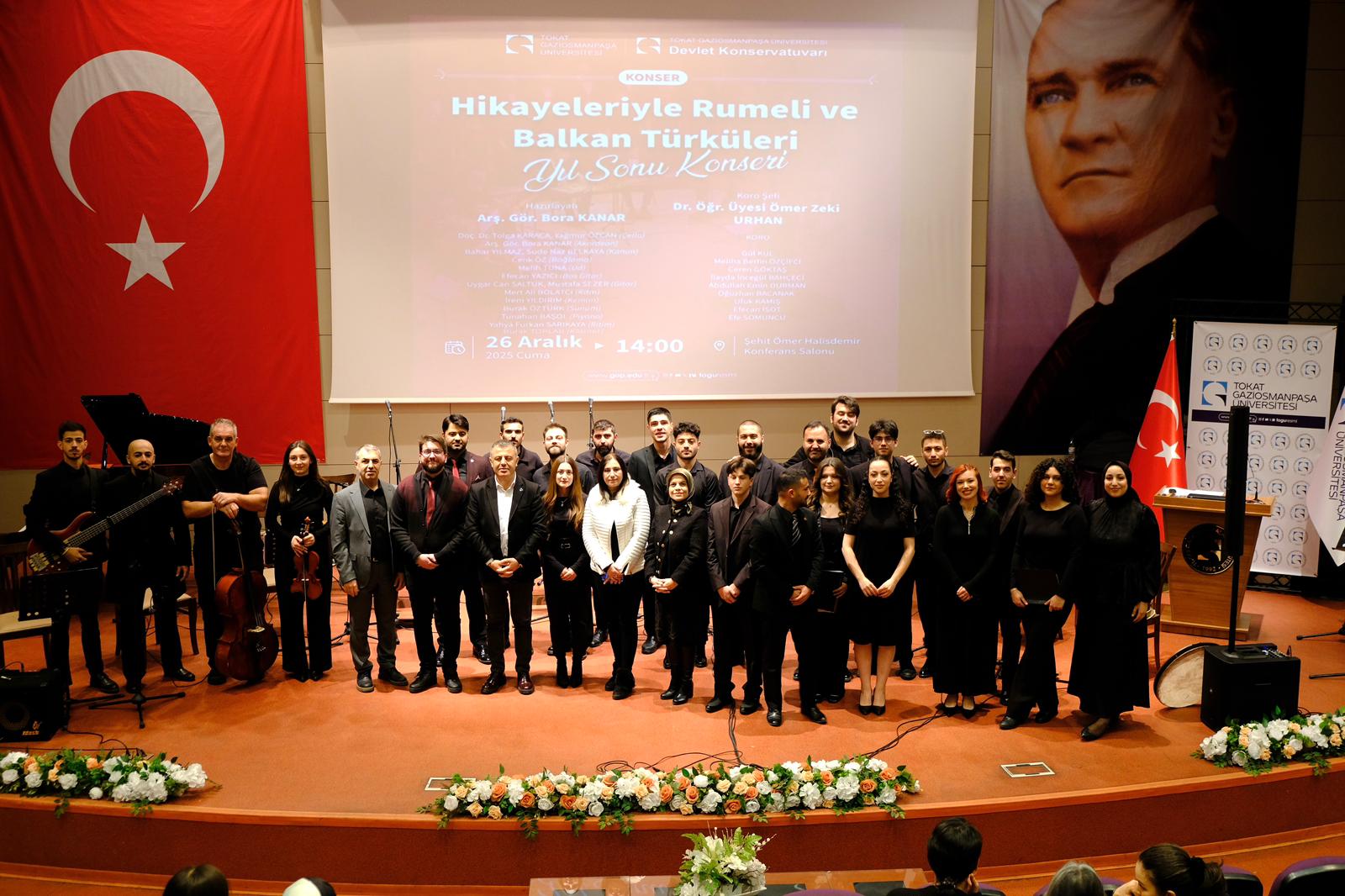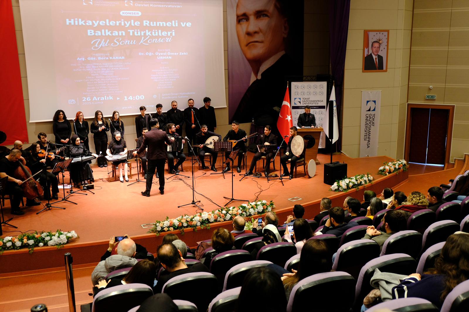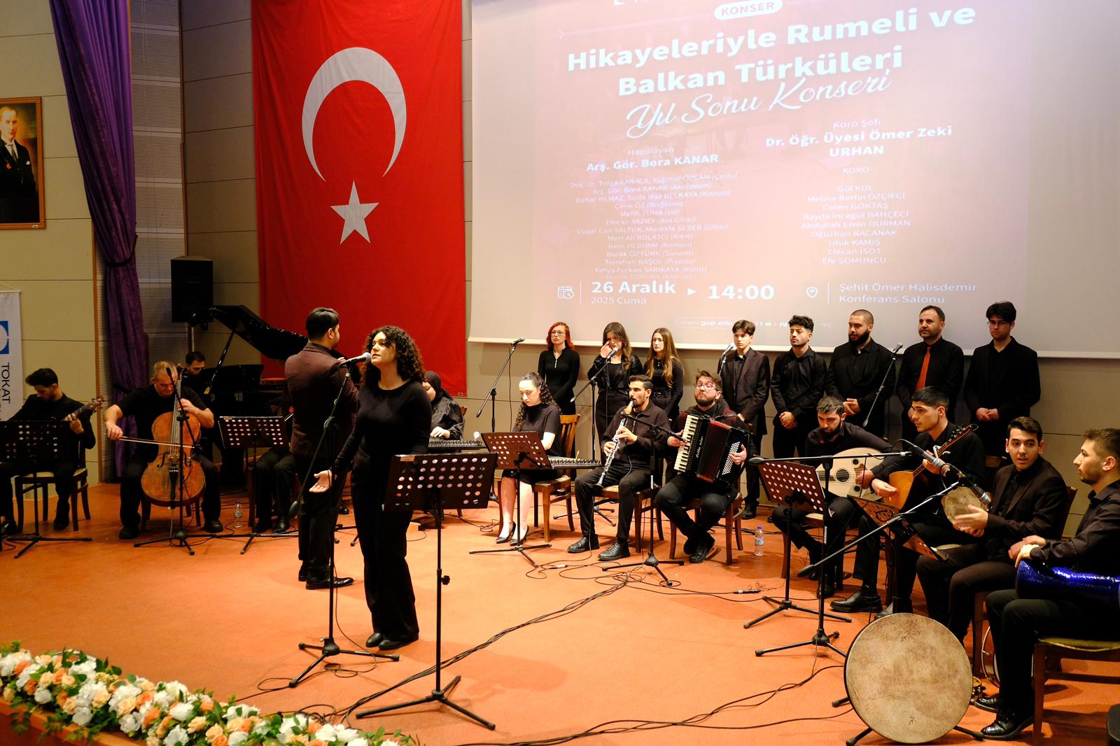 TOGÜ Devlet Konservatuvarı tarafından düzenlenen “Hikâyeleriyle Rumeli ve Balkan Türküleri” başlıklı yılsonu konseri, 26 Aralık 2025 Cuma günü saat 14.00’te Şehit Ömer Halisdemir Konferans Salonunda gerçekleştirildi. Konsere Tokat Balkan Türkleri Kültür ve Dayanışma Derneği Başkanı Yavuz Cemil Erdem, akademik ve idari personelimiz ile öğrenciler katıldı.